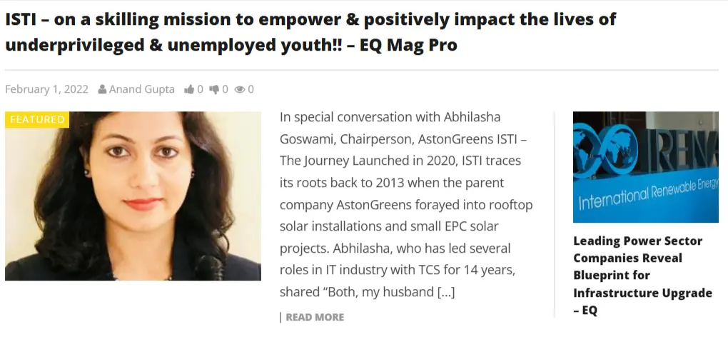 ISTI – on a skilling mission to empower & positively impact the lives of underprivileged & unemployed youth!! – EQ Mag Pro